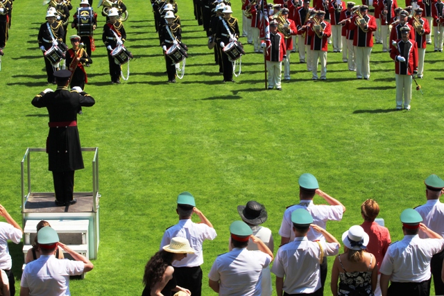 Endlich konnte der Fallschirmabsprung mal wieder stattfinden - Kaiserwetter bei der Musikparade.